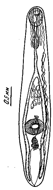 Amphimerus lancea (Diesing, 1850) (по Вески, 1900, из Баркера, 1911)