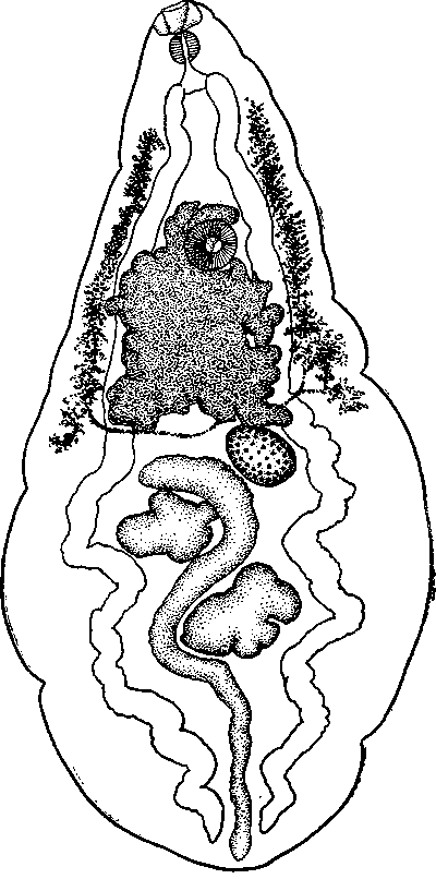 Половое отверстие расположено медианно, на расстоянии 1/5 длины тела от переднего конца.
