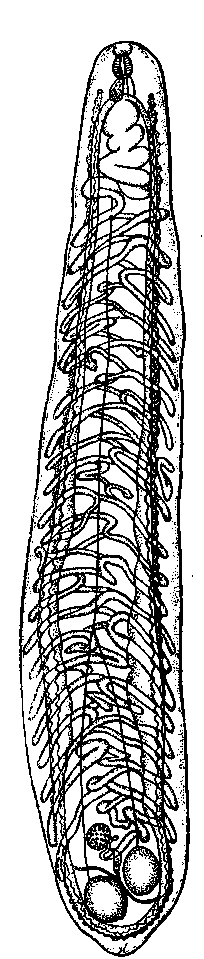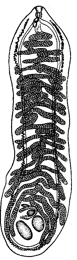 Описание вида (по Витенбергу, 1923). Тело плоское, 6.5—12.0 мм длины и 2.0—4.0 мм ширины, в передней части уже, чем в задней, с обоих кондов закруглено. Передний конец тела снабжен круглым ротовым отверстием, 0.11—0.17 мм в диаметре, причем окружность последнего имеет несколько резкое очертание, что напоминает как бы маленькую присоску. Отверстие ведет в короткий воронкообразный префаринкс, который почти исчезает при сокращении передней части тела и переходит в шаровидный фаринкс, 0.262 до 0.331 мм в поперечнике. Пищевод короткий, обычно изгибается дугой к дорзальной поверхности и иногда так сильно, что становится незаметным, ибо глотка в этих случаях скрывает его, приближаясь вплотную к кишечному развилку.