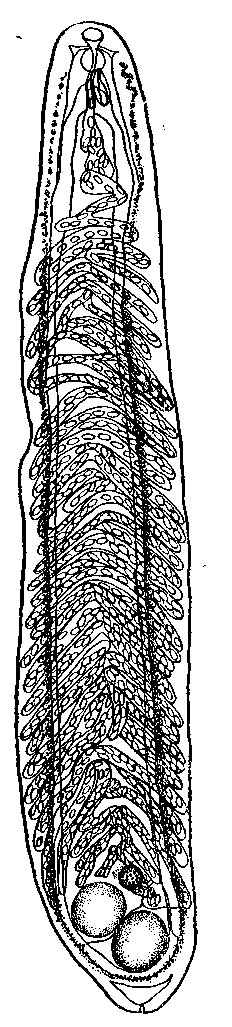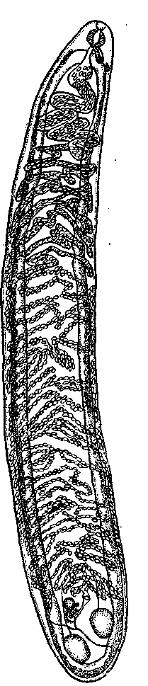 Кишечные ветви проходят прямо или слегка изгибаясь. Половое отверстие располагается перед фаринксом.