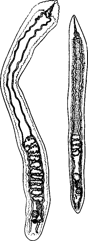 Яичник лопастной, овальный, лежит в правой стороне тела. Размер его равен 0,154 х 0,22—0,23 X 0,28 мм.