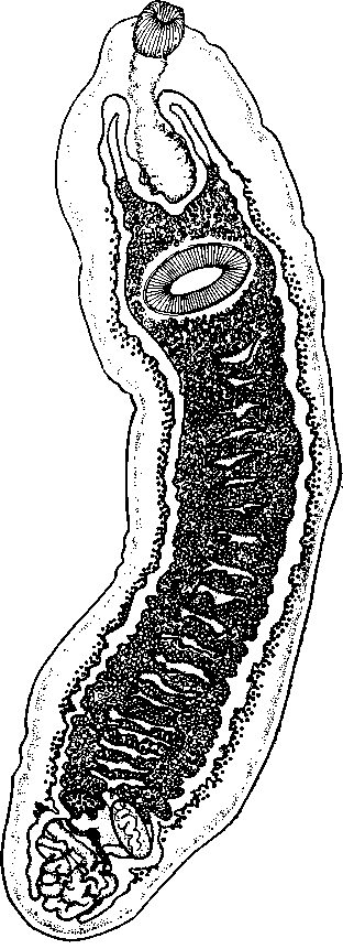 Наличие большого, извилистого железистого пузырька, плотно прилегающего к стенкам кишечных стволов в области их слепых концов, является характерным признаком описываемого вида. В гистологическом отношении стенки этого трубчатого образования состоят из эпителиальных клеток, утративших свои первоначальные очертания и в большинстве случаев — ядра. Однако немногочисленные ядра, подвергшиеся перерождению, попадаются кое-где в эпителии, продуцирующем секрет; у взрослых экземпляров секрет заполняет также просвет пузыря.