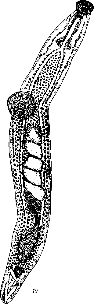 Яичник лопастной, достигает 0,26 мм длины и 0,12 мм ширины, располагается вентрально от половой бурсы в промежутке между наружным семенным пузырьком и желточным резервуаром. Яйцевод начинается от правой стороны яичника, утолщен. Оотип короткий, окружен тельцем Мелиса. Семяприемник имеется. Лауреров канал не был обнаружен. Желточники простираются от кишечной бифуркации и доходят до середины яичника. Кпереди от семенников они занимают интерцекальную зону. Яйца веретенообразной формы, достигают 0,234 мм длины (включая полярные выступы) при ширине 0,012 мм.