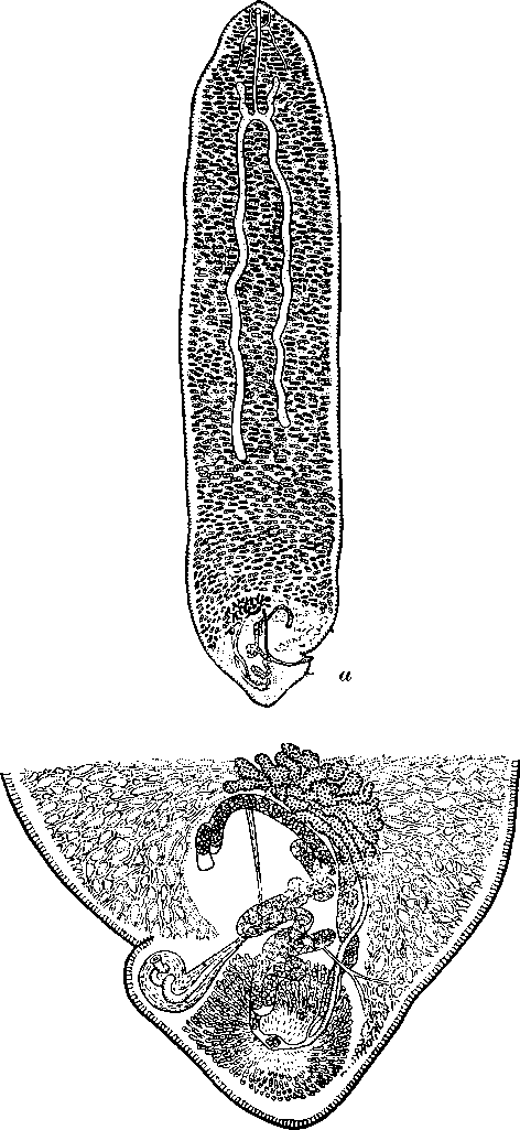 Передний vas deferens расположен на медианной линии между тельцем Мелиса и яичником; впереди тельца Мелиса к нему присоединяется задний vas deferens, идущий от заднего конца семенника; вскоре после этою они вместе входят в половую бурсу, не расширяясь в семенной пузырек.