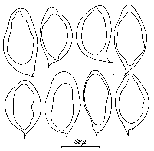 Яйца шистозоматид из фекалий индийского слона (по Фогелю и Миннингу, 1940)