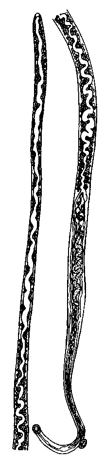 Ornithobilharzia bomfordi (Montgomery, 1906) (оригинал). Самец с самкой