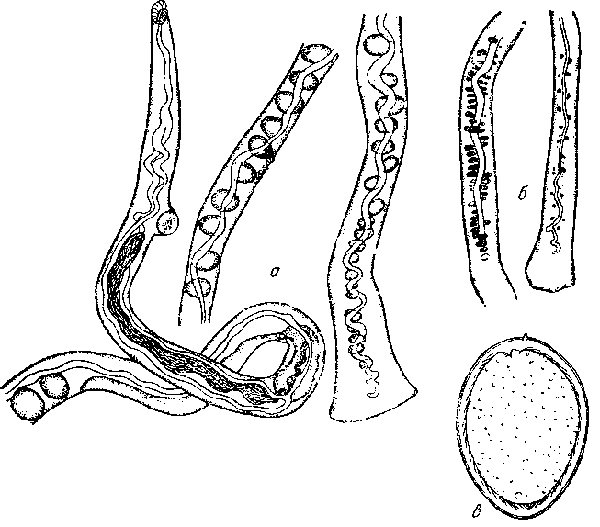 a — самец; б — участки тела самки; в — яйцо