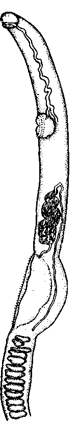 Pseudobitharziella hurnetti Brackett, 1942 (по Брэкетту, 1942) Передний конец самца