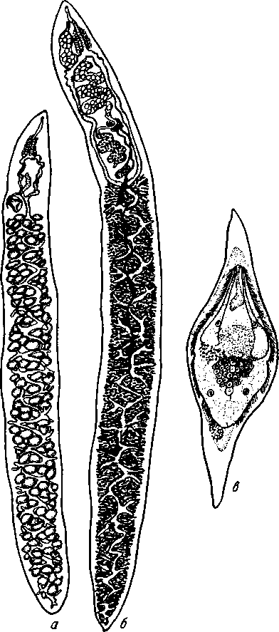 а — самка; б — передний конец самца