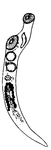 Brachylecithum filum (Dujardin, 1845) Strom et Sondak, 1935 (по Штрому и Сондак, 1935)