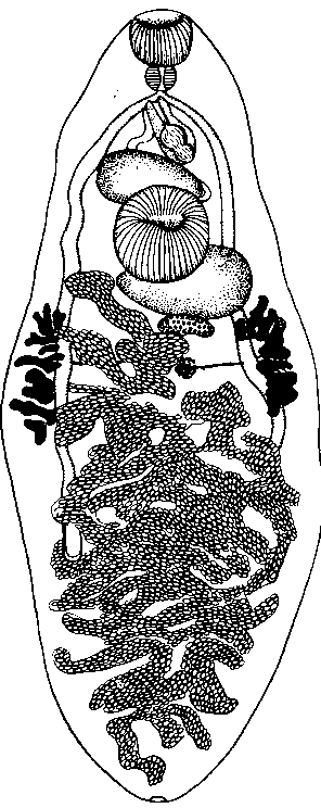 Половая бурса содержит циррус, простатическую часть и скрученный семенной пузырек. Семенники лежат в одном поле и отдельных зонах. Зона переднего семенника очень отдалена от зоны брюшной присоски. Яичник в поле семенников, с зоной более или менее удаленной от заднего семенника. Тельце Мелиса и семяприемник лежат позади яичника. Желточники латеральные, экстрацекальные и цекальные; они состоят из многочисленных мелких фолликулов, занимающих длинный, узкий участок. Терминальная часть матки образует группы петель между гонадами и между передним семенником и брюшной присоской, не образуя фактически петель впереди брюшной присоски.