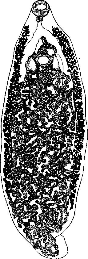 Семенники эллипсовидной формы; наибольшая их ось расположена в продольном направлении; они достигают 0,33—0,34 мм и 0,48—0,52 мм и располагаются по бокам брюшной присоски. Яичник круглый, 0,34—0,43 мм в диаметре, располагается по медианной линии позади брюшной присоски между семенниками. Желточники состоят из многочисленных фолликулов, расположенных кнаружи от кишечных стволов; начинаются они в области бифуркации кишечника и оканчиваются на уровне слепых концов кишечных стволов. Матка занимает все интра- и экстрацекальное пространство. Яйца достигают 0,049—0,063 мм длины и 0,021—0,025 мм ширины.