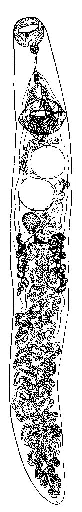 Lyperosomum strigis Yamaguti, 1939 (по Ямагути, 1939)