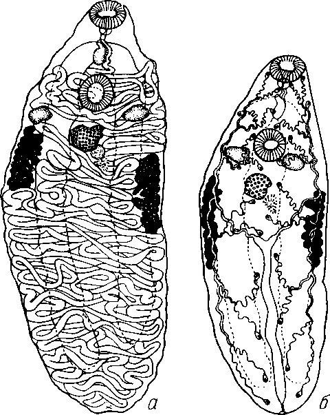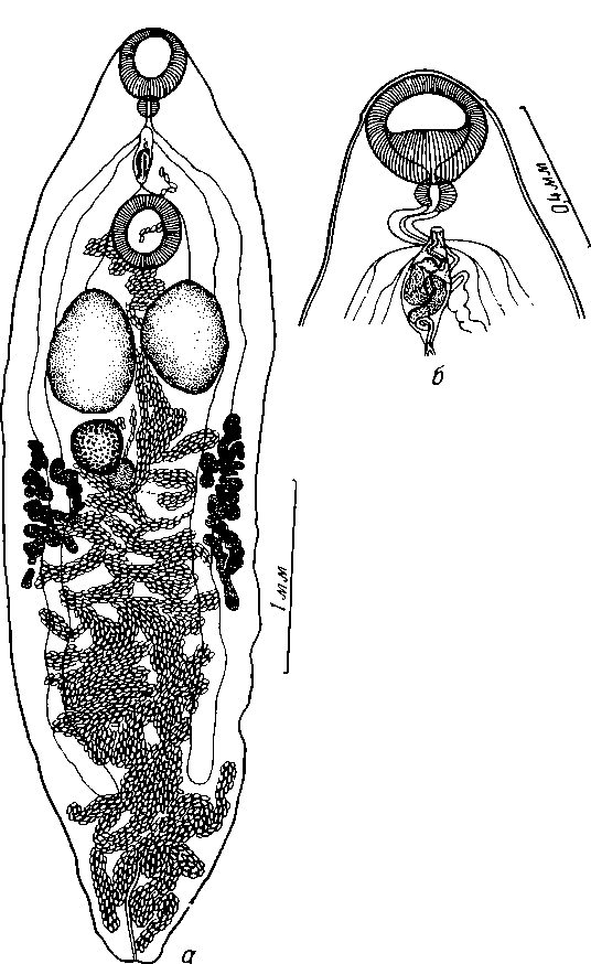a — общий вид; б — строение концевого полового аппарата