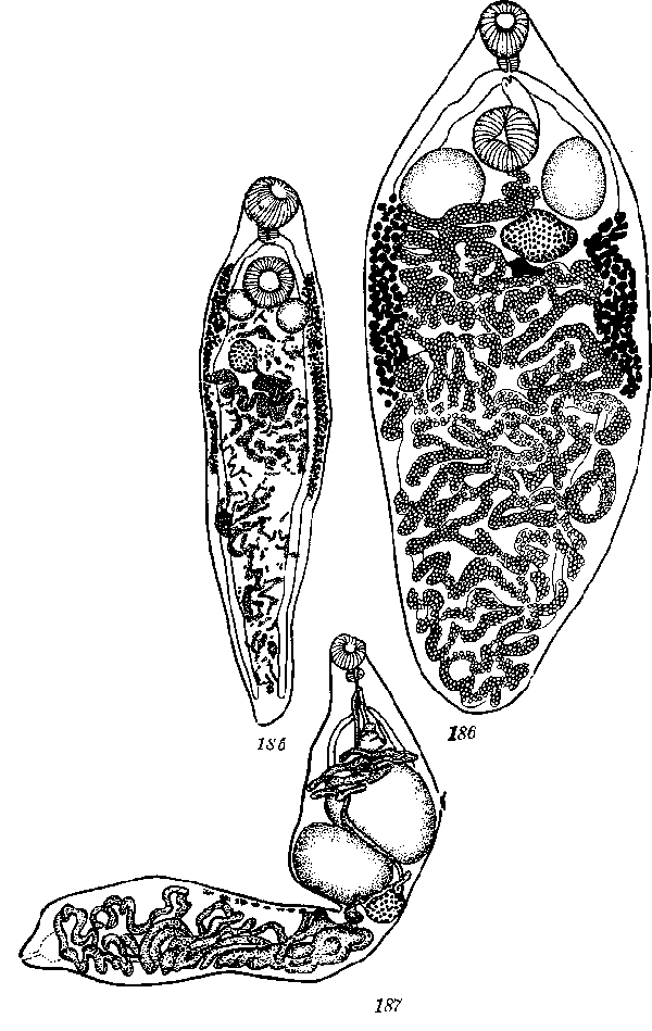 187. Platynosomum ventricosum (Rudolphi, 1809) Travassos, 1918 (по Коссаку, 1910)
