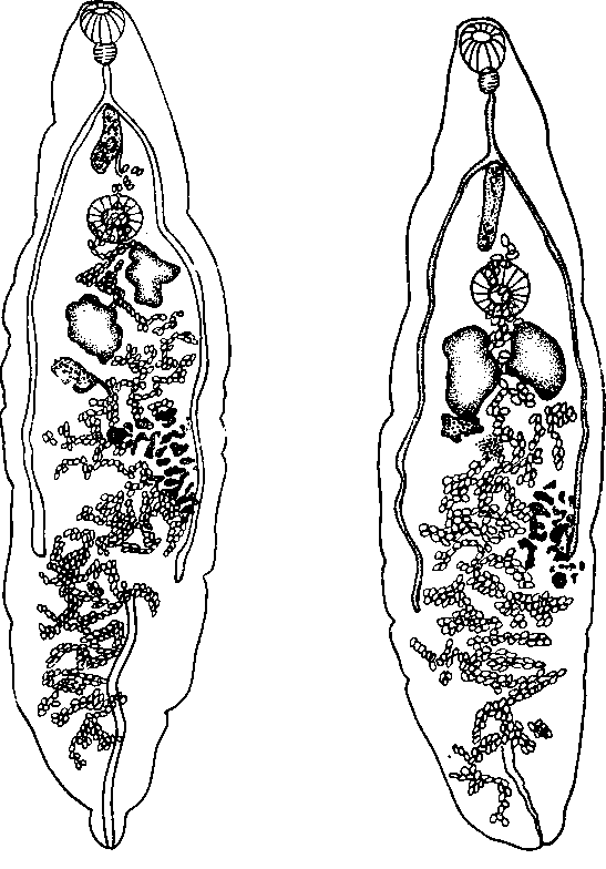 Начинаются желточники позади яичника; тем самым они размещаются в начальной части задней половины тела. Матка занимает интрацекальную зону; наиболее густо петли ее заполняют заднюю половину тела, поскольку там располагается как нисходящий, так и восходящий ее отделы. Кпереди от яичника петли матки расположены значительно менее густо, поскольку здесь проходит только ее восходящий ствол, ведущий к половому отверстию. Половое отверстие располагается медианно, кпереди от брюшной присоски. Яйца многочисленные, мелкие.