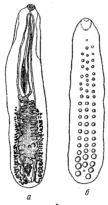a — общий вид; б — расположение вентральных желез
