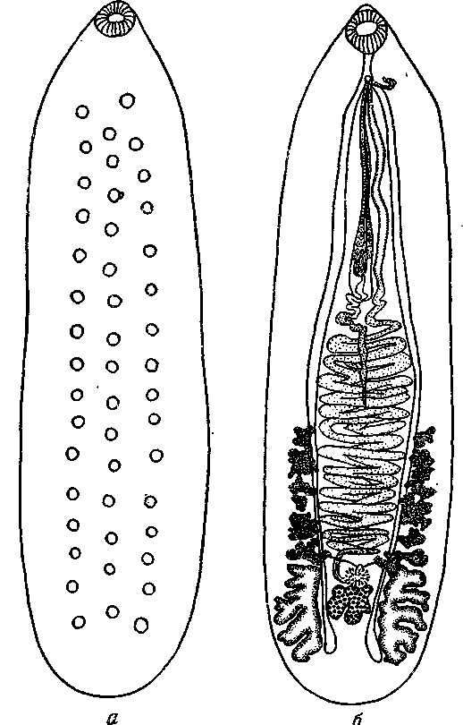 Notocotylus linearis (Rudolphi, 1819) U. Szidat, 1936 (по У. Сцидат, 1936)