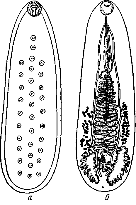 a — расположение вентральных желез; б — общий вид