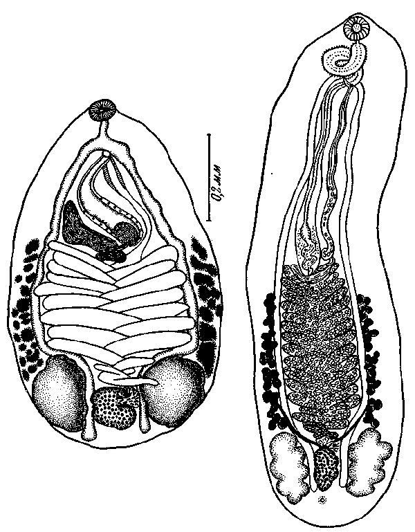 Рaramonostomum alveatum (Mehlis, 1846) (по Мюлингу, 1898)