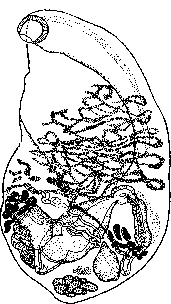 Nudacotyle tertius Travassos, 1939 (по Травассосу, 1939)