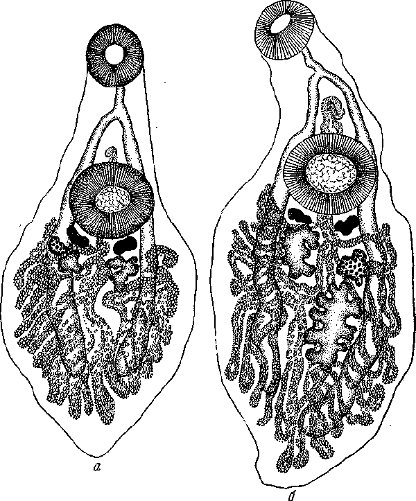 Все внутреннее пространство тела мирацидия между эктодермальным слоем и кишкой заполнено не имеющими ясных границ клетками.