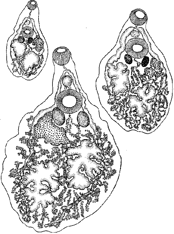 Таким образом, в процессе маритогонии у данного вида форма тела, строение и расположение присосок и половых органов в общем не слишком сильно изменяется от молодых к половозрелым червям, как это имеет место у других филлодистом [Ph. (Ph) folium, Ph. (Ph.) angulatum и др. ].