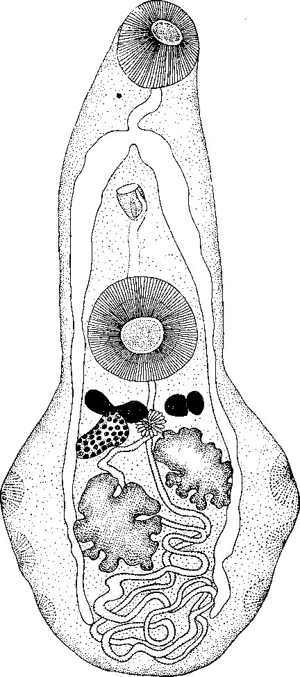 Phyllodistomum (Catoptroides) lewisi Srivastava, 1938 (по Сривастава, 1938)