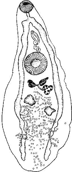 Phyllodistomum (Catoptroides) linguale Odhner, 1902 (по Однеру, 1902)