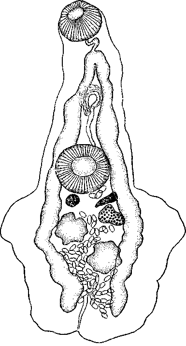 Phyllodistomum (Catoptroides) macrobrachicola Yamaguti, 1934 (по Ямагути, 1934)