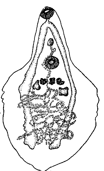 Phyllodistomum (Catoptroides) spatulaeforme (Odhner, 1902) (по Однеру, 1902)