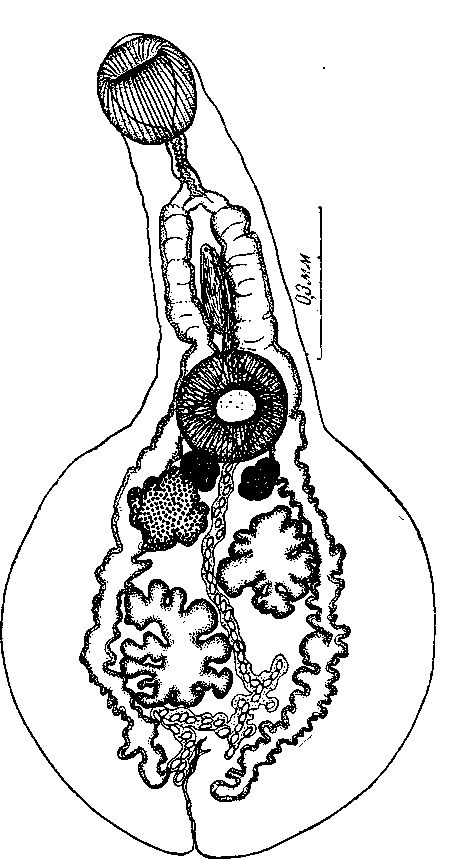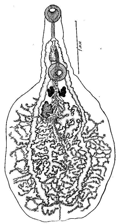 Phyllodistomum (Catoptroides) stromi Pigulevsky, 1953 (по Пигулевскому, 1953)