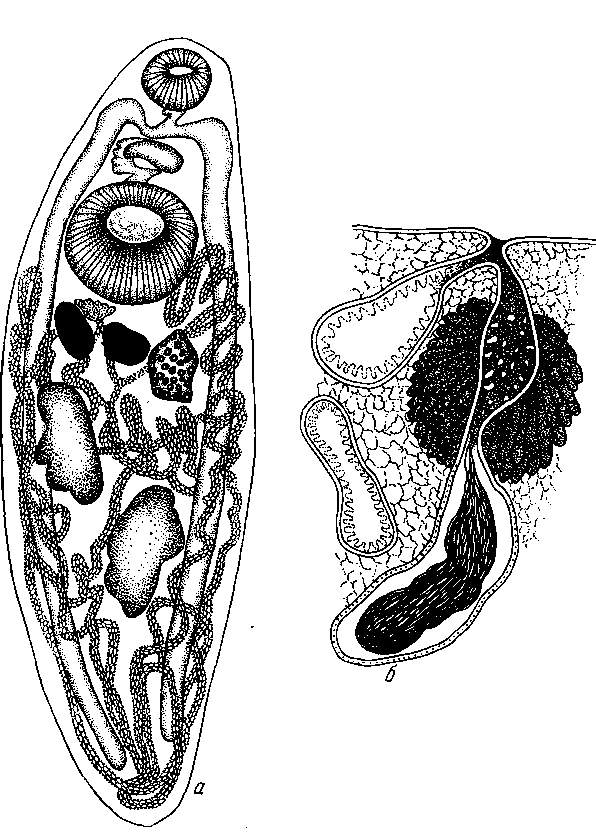 a — марита; б — сагиттальный срез через концевой половой аппарат