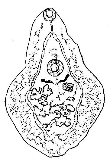 Желточники расположены тотчас же кзади от брюшной присоски - Gorgorimma Pigulevsky, 1952.