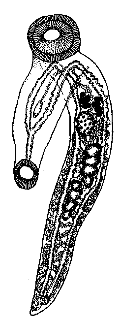 Gorgoderina (Gorgoderina) skarbilovitschi Pigulevsky, 1953 (по Соколову и Кабаллеро, 1933)