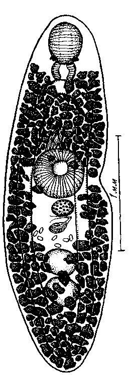 Длина ротовой присоски 0,59—0,41 мм при ширине 0,376—0,639 мм. Брюшная присоска 0,983 мм длины и 0,983—1,081 мм ширины. Длина префаринкса 0,245—0,311 мм; длина фаринкса 0,196—0,491 мм при ширине 0,311—0,578 мм. Короткий пищевод достигает 0,163 мм длины. Кишечные стволы доходят до заднего конца тела. Длина шарообразного яичника 0,327—0,409 мм при ширине 0,344—0,426 мм. Круглые или слегка овальные семенники 0,409—0,458 мм в диаметре. Желточники мощно развиты, распространяются по всему телу, за исключением самой передней его части. Слабо развитая половая бурса открывается позади кишечного развилка. Яйца 0,081—0,918 мм длины при ширине 0,0405—0,045 мм.