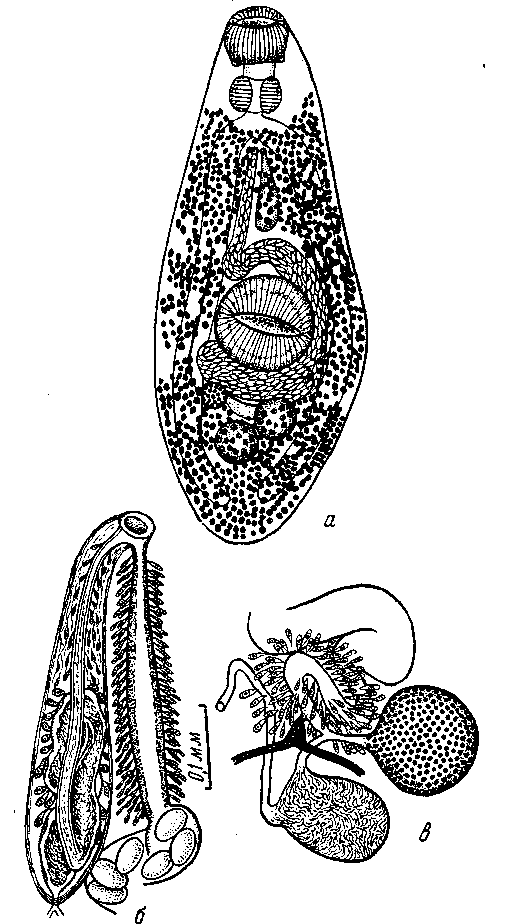 а — марита; б — концевой половой аппарат; в — комплекс женских органов