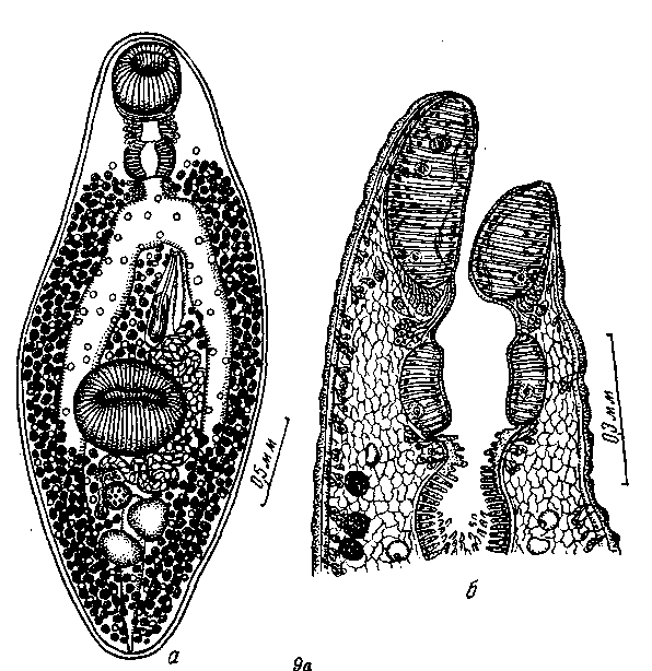 а — марита; 6 — срез через головной конец