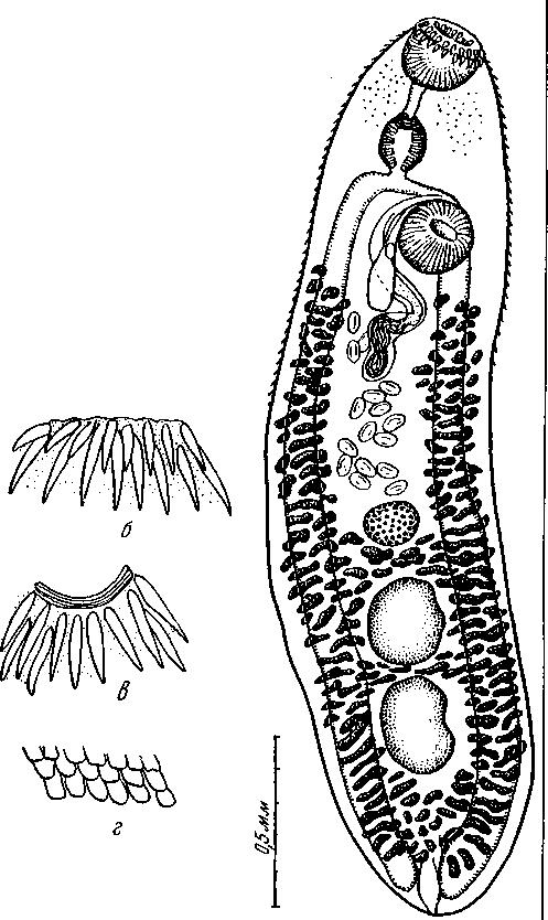 a — марита; 6 — шипы вокруг рта; в — женский половой аппарат