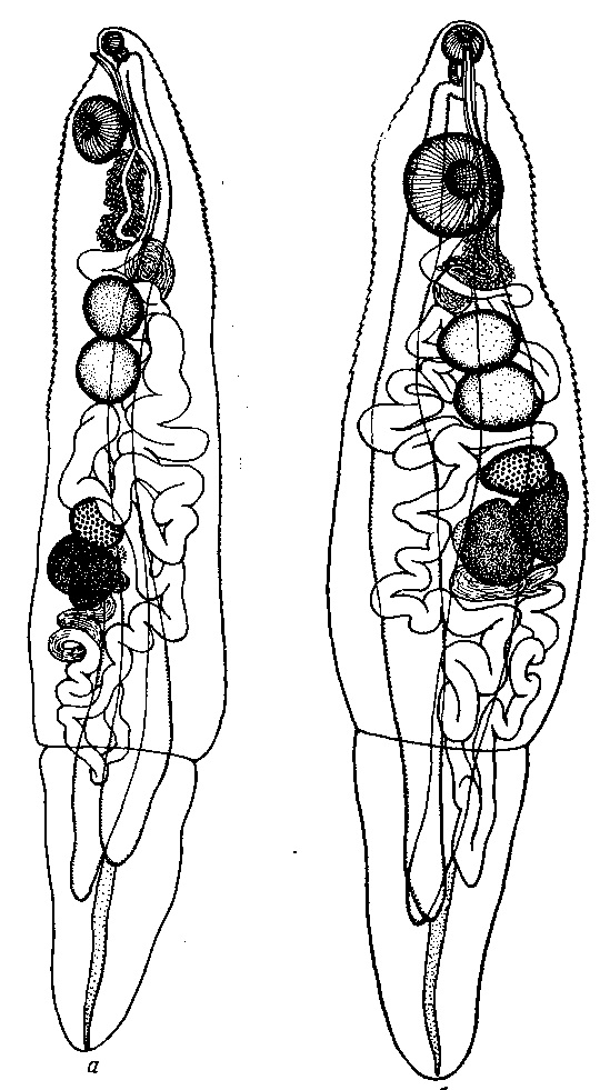 (синонимы: a — Parahemiurus harengulae Yamaguti, 1938; 6 — Parahemiurus atherinae Yamaguti, 1938)