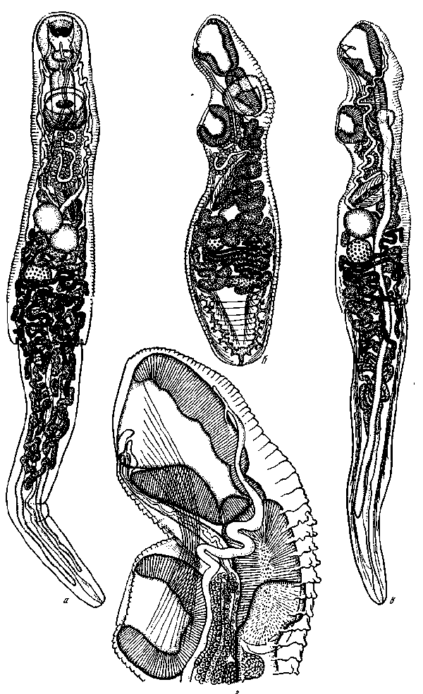 а, б, в — общий вид; г — детали переднего конца тела
