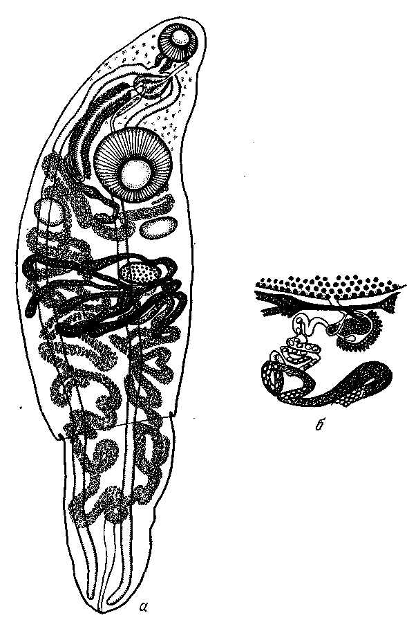 a — общий вид; б — комплекс женских половых органов