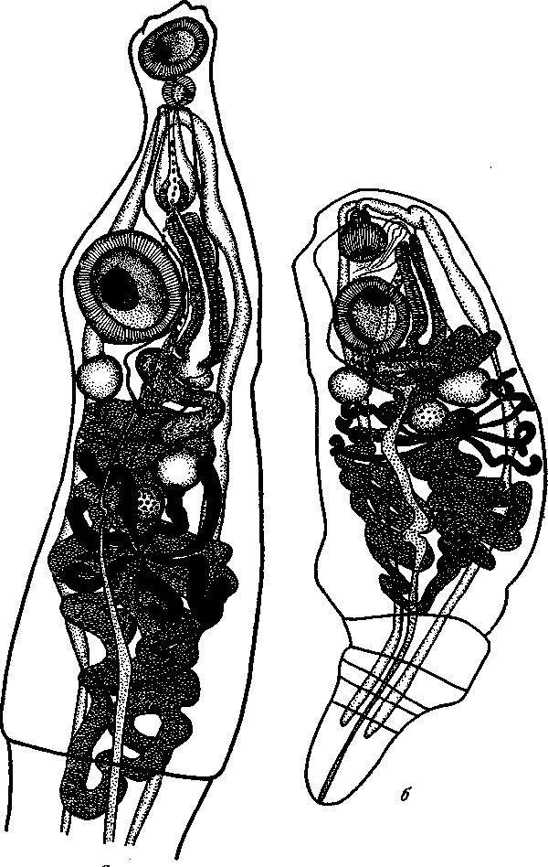 a — нормальный экземпляр; б — в сокращенном состоянии