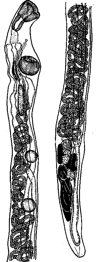 Метратерм, 0,1—0,27 мм длины и 0,015—0,025 мм ширины, сужен в месте соединения его с собственно маткой, окружен здесь массой железистых клеток и снабжен похожим на сфинктер мышечным утолщением на своем заметно утонченном дистальном конце. Яйца эллиптические, светлокоричневого цвета, содержат эмбрионов; их размеры 0,032—0,039 X 0,017—0,020 мм в живом состоянии. Экскреторный пузырь трубчатый, лежит дорзально от яичника, семяприемника и матки, образуя удлиненную S-образную кривую между семенниками. Позади брюшной присоски экскреторный пузырь делится на две латеральные ветви, которые соединяются дорзально от ротовой присоски. Экскреторное отверстие лежит терминально. Восходящий главный собирающий сосуд открывается в каждую латеральную ветвь на ее дорзальной стороне, дорзо-латерально от ротовой присоски.