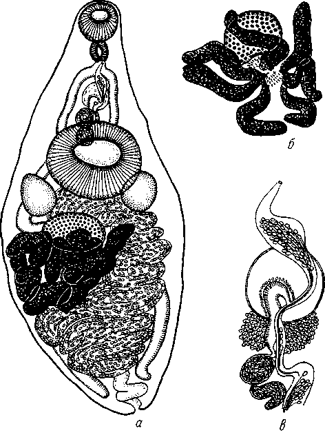 a — общий вид; б — комплекс женских половых органов; в — концевой половой аппарат