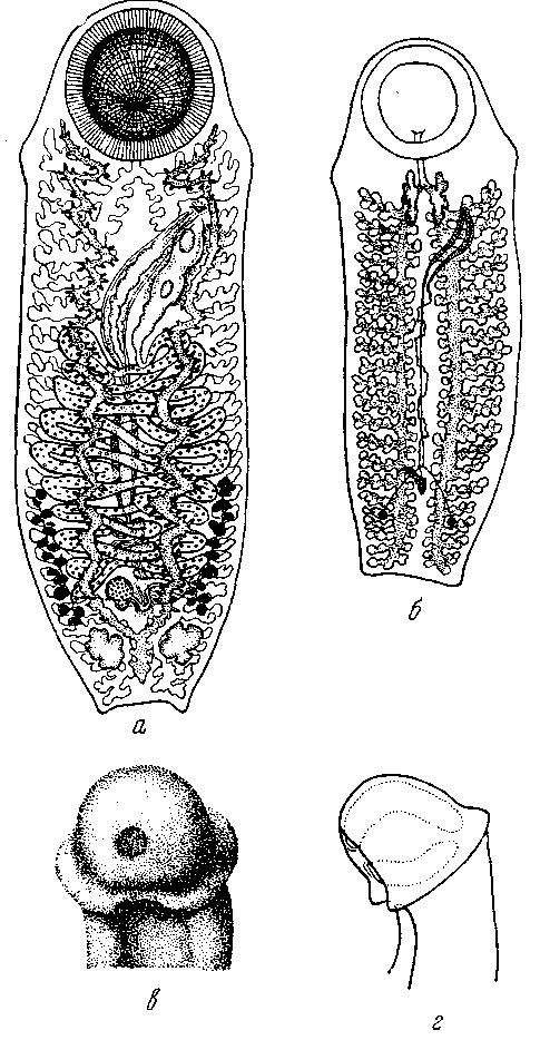 a — марита; б — пищеварительная система; в и г — головные концы