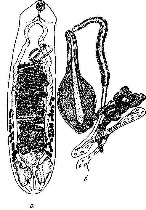 Половые отверстия раздельные, но тесно сближенные, расположены на уровне левого кишечного ствола. Копулятивные органы мощные. Два отдела половой бурсы, т. е. отдел, заключающий в себе простатическую часть, и отдел, содержащий циррус, не разделены сужением. Семенники симметричные, расположены на одном горизонтальном уровне, локализуются в заднем конце тела; они или цельнокрайные, или снабжены небольшими выемками. Яичник одинаковой формы с семенниками. Петли матки лежат в пространстве между кишечными стволами, и лишь передние, при сильном сокращении тела, иногда могут несколько выходить за их пределы. Яйца снабжены -простыми филаментами на обоих полюсах.