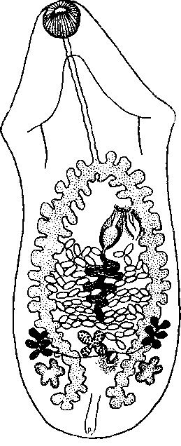 Половое отверстие лежит в левой половине тела, на небольшом расстоянии от головного конца, у внутреннего края кишечного ствола.