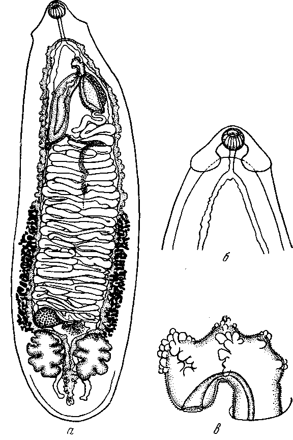 а — марита; б — головная часть с вентральной стороны; в — циррус
