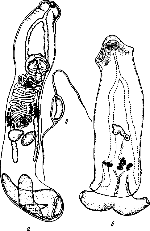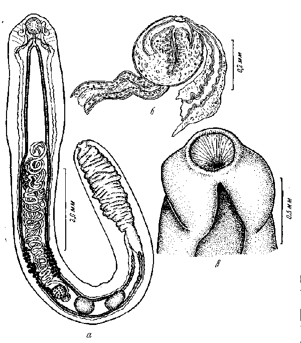 a — марита; б — концевой отдел половых протоков; в — головной конец